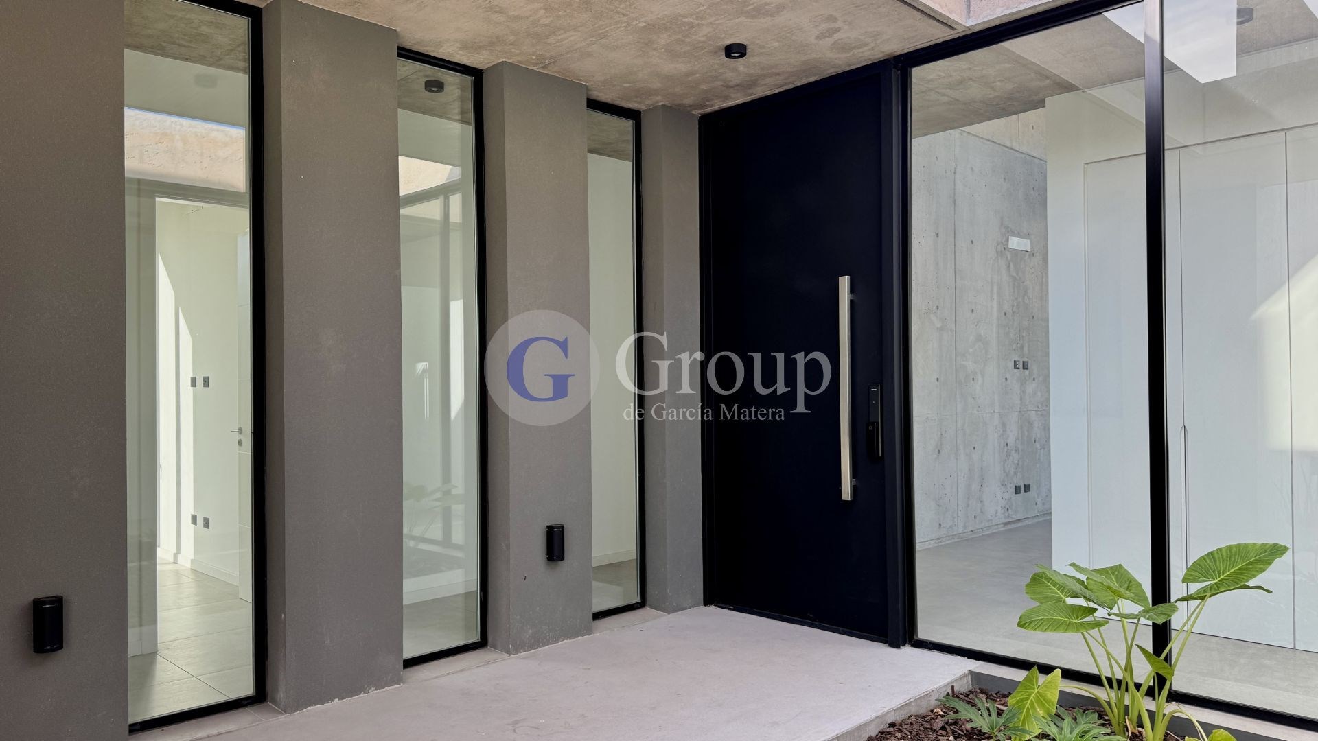 Casa moderna en venta en La Calesa – Pilará Diseño contemporáneo en una planta, con jardín, pileta y excelentes terminaciones Ubicada en el exclusivo barrio La Calesa dentro de Pilará, esta propiedad de arquitectura moderna se desarrolla íntegramente en una planta sobre un lote de 955 m², con una superficie total construida de 289,5 m². La casa fue diseñada para ofrecer amplitud, funcionalidad y una gran conexión entre interior y exterior, con espacios luminosos, materiales de primera calidad y una distribución ideal para la vida familiar. Al ingresar, un hall de recepción con placard organiza el acceso hacia el área social. Allí se encuentra un amplio living y comedor integrados, con grandes ventanales que conectan visualmente con el jardín y la galería. La cocina moderna con isla central se integra al espacio social y cuenta con mesadas de granito, amplio lugar de guardado y sector pensado para estación de café. Desde la cocina se conecta un playroom o comedor diario, ideal como estar familiar. La propiedad también cuenta con: Toilette de recepción Escritorio o cuarto de huéspedes con baño en suite y acceso independiente Lavadero independiente con salida exterior Sector privado El área íntima de la casa se compone de: Master suite con vestidor y baño completo con doble bacha y ducha doble Dos suites junior, cada una con baño privado y vestidor Los dormitorios fueron diseñados con amplias dimensiones, excelente iluminación natural y frentes de placard de piso a techo. Exterior: La casa propone un excelente vínculo con el jardín a través de una gran galería semicubierta con parrilla y brasero, mesada y bacha, ideal para disfrutar reuniones y momentos al aire libre. El jardín se encuentra completamente parquizado e incluye: Pileta con solárium atérmico e iluminación Amplio espacio verde Cochera semicubierta para dos vehículos Detalles constructivos y terminaciones: La propiedad se destaca por su calidad constructiva y equipamiento: Calefacción por losa radiante sectorizada Preinstalación de aire acondicionado en todos los ambientes Aberturas DVH A30 color negro Pisos de porcelanato de grandes piezas Puerta principal pivotante de hierro Revestimiento exterior tipo Tarquini Instalaciones sanitarias y de gas por termofusión Caldera de alto rendimiento Termotanque Rheem Bomba presurizadora Cisterna de 1000 litros Vivir en Pilará La Calesa forma parte del exclusivo desarrollo Pilará, un proyecto de 350 hectáreas que combina naturaleza, deporte y arquitectura de primer nivel. Entre sus amenities se destacan: Cancha de golf Signature diseñada por Jack Nicklaus Club House con restaurante y bar 14 canchas de tenis Gimnasio y pileta Guardería infantil Caballerizas y pista de vareo Seguridad y amplios espacios verdes Una propiedad ideal para quienes buscan diseño moderno, comodidad y un estilo de vida exclusivo dentro de uno de los desarrollos más prestigiosos de Pilar.