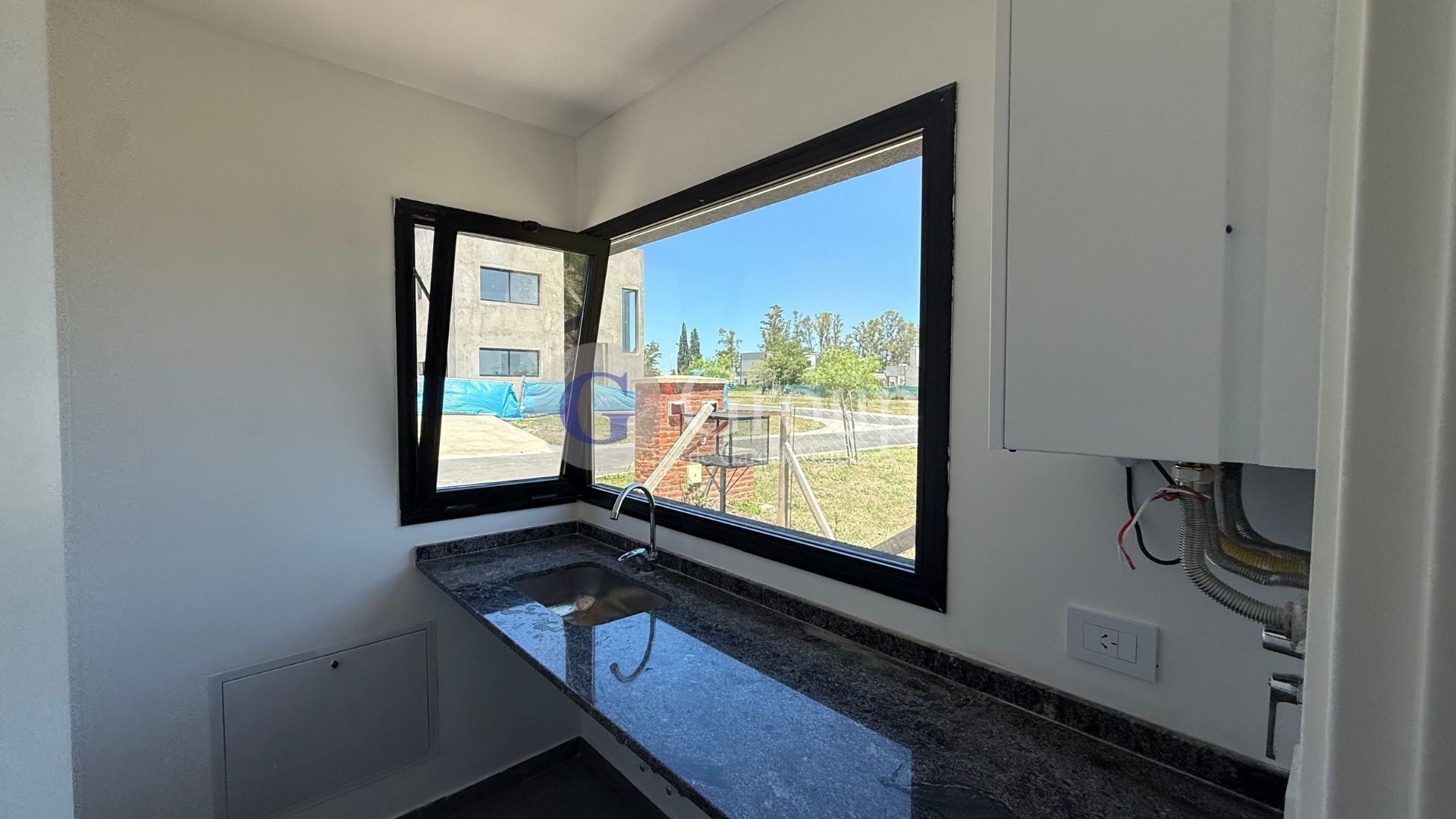 Excelente y moderna casa en una sola planta en el barrio cerrado Santa Sofia, sobre lote central con fondo que da a espacios verdes. La casa cuenta cn hall de ingreso, amplio y apaisado living comedor, con cocina semi integrada, lavadero, toilette, jardín interno para colocar plantas, pequeño escritorio, habitación principal en suite con vestidor y baño completo. Dos dormitorios secundarios con un baño completo que los asiste. En el exterior cuenta con hermosa y amplia galería apaisada, con parrilla y mesada. Características constructivas: Platea, techos losa con membrana, calefacción por losa radiante con caldera dual, revestimiento exterior tipo tarquini, aberturas negras doble vidrio, pisos de porcelanato, muebles de cocina con melamina y cierre suave, puerta de entrada en PVC pivotante, excelentes terminaciones y detalles.
