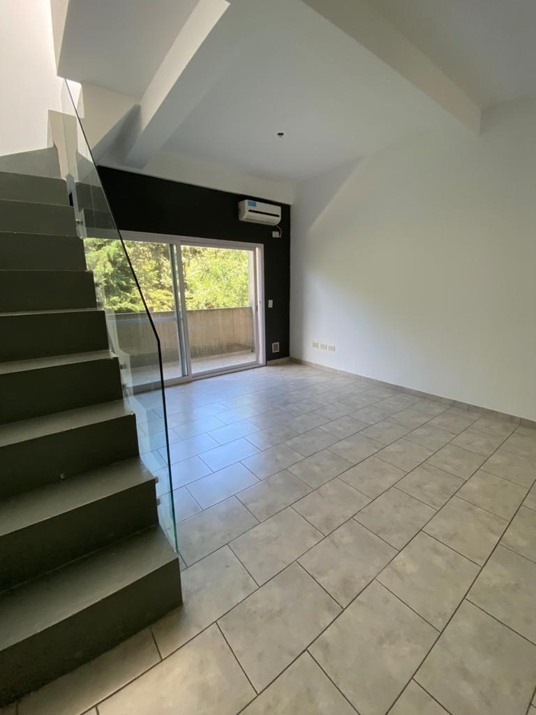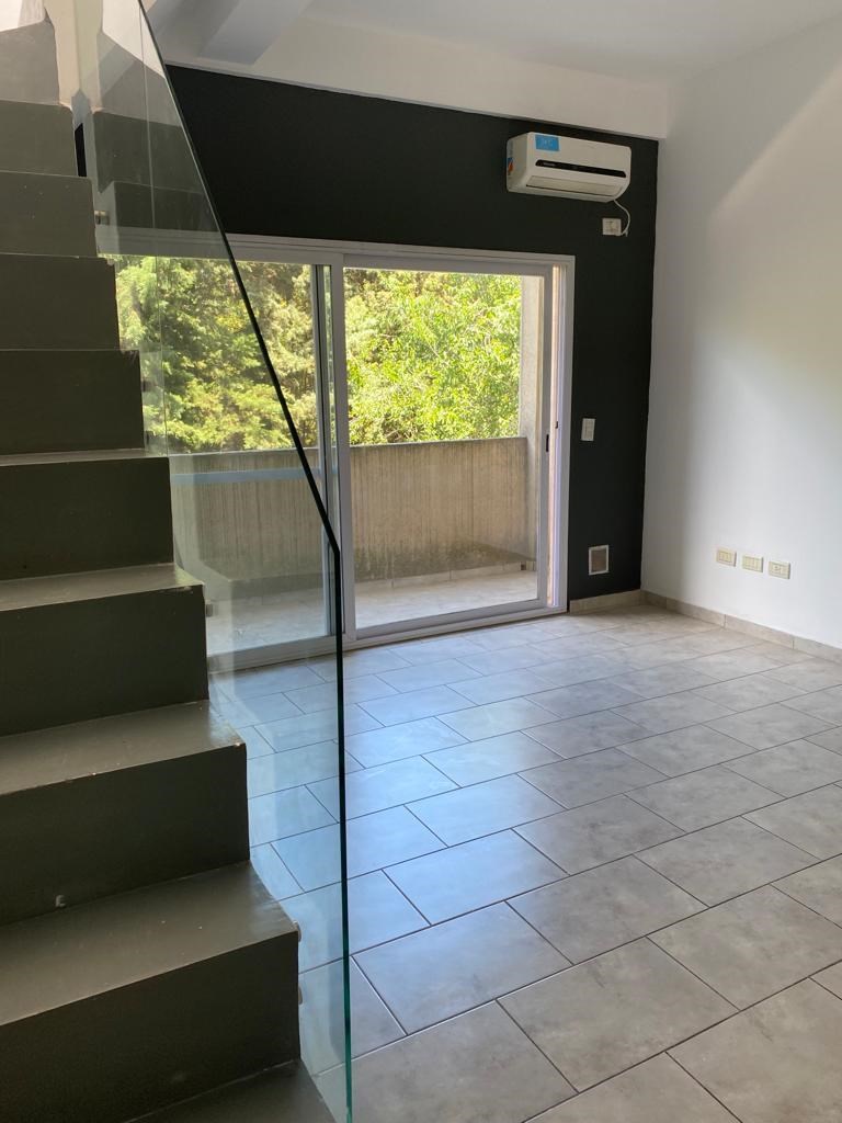 Departamento 2 ambientes distribuido en 2 plantas En PB tenemos el living comedor integrado con la cocina y el balcón Por escalera, accedemos al dormitorio con su baño completo Cochera: incluída Amenities de Campanillas Cuenta con un amplio SUM - Pileta - Laundry Condiciones El alquiler NO incluye ARBA ( $ 80.000 anual ) Cláusula de ajuste trimestral por IPC En Expensas, se incluye AGUA + Inmobiliario Se aceptan mascotas LAS CAMPANILLAS es un complejo exclusivo de 52 departamentos de 1 y 2 ambientes, con amplia galería con jardín ubicado frente al Highland Country Club. LA ZONA es tranquila y segura, con actividades recreativas, sociales, paseos de compras, shoppings, supermercados, gastronomía y servicios educativos, de salud y demás