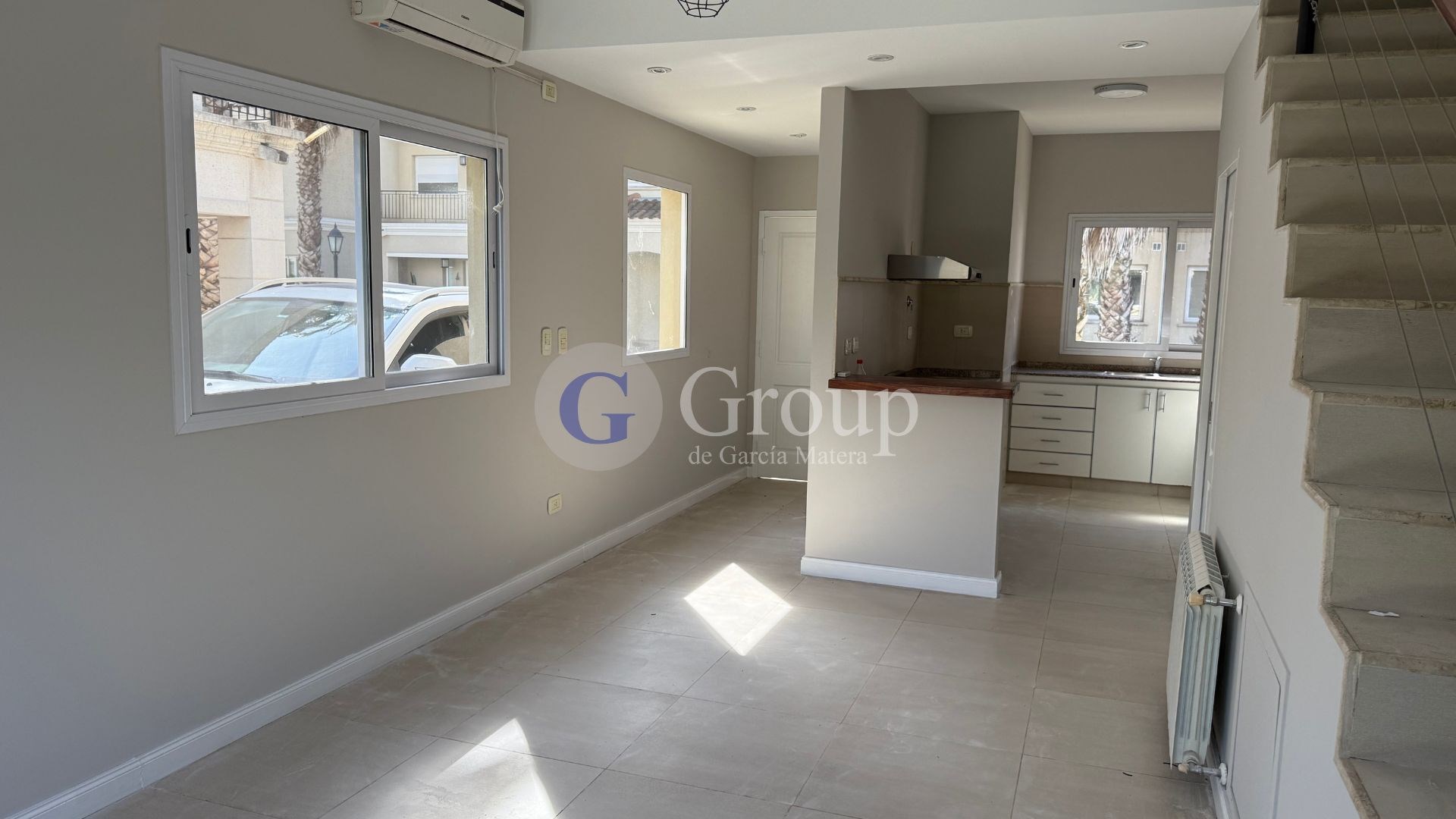 Departamento tres ambientes de 100 m² en Boulevard del Sol, Pilar. Duplex desarrollado en dos plantas. APTO CREDITO! Living comedor con hogar. Cocina integrada. Baulera. Toilette de recepción. Planta alta: Dos dormitorios. Un baño completo. Exterior: Galería con parrilla. Jardín propio. Detalles: Calefacción por radiadores. Doble vidrio. Boulevard del sol es un excelente complejo en la mejor zona de pilar, con unidades de uno, dos, tres y cuatro ambientes construidos con materiales de primera categoría, luminosos, y con inmejorable entorno. Se encuentra ubicado en calle Caamaño rodeado de colegios, barrios privados, centros comerciales y muy cerca de panamericana, en el km 46,5. Cuenta con un amplio sum, pileta, solárium, laundry, cocheras asignadas y seguridad las 24 horas, control de acceso, alambrado perimetral y cámaras de seguridad, agua corriente, cloacas, y todos los servicios Se deja aclarado que la información contenida en esta publicación es aproximada y podría haber sufrido alguna modificación o corrección entre su publicación y el tiempo de su visualización que no compromete a Group de García Matera. Group de García Matera CMCPSI 3623